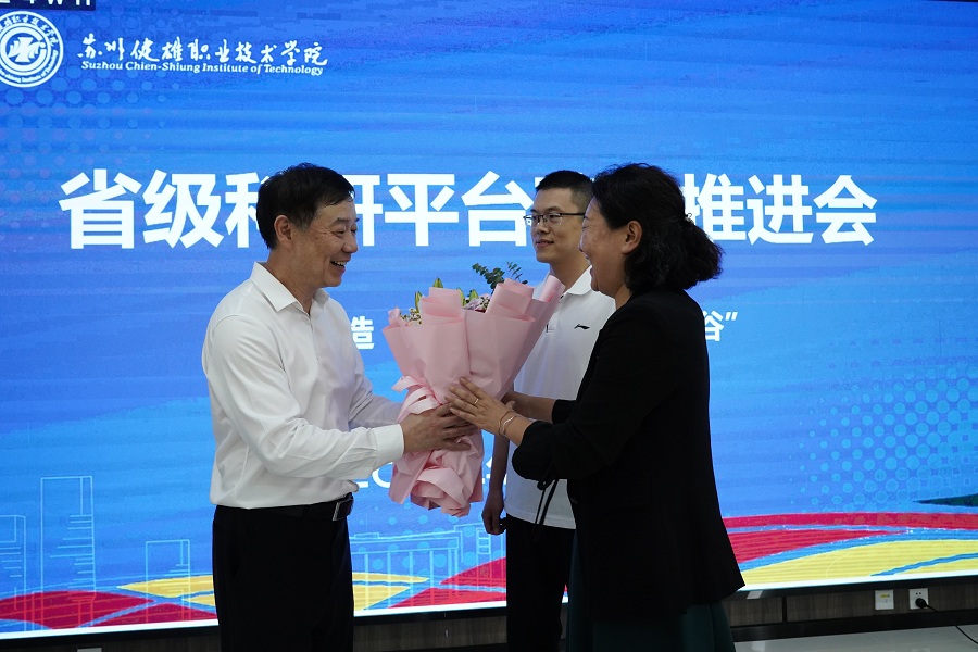 在智能制造学院D1-103会议室里,正在召开打造“肽谷”“钛谷”“态谷”省级科研平台建设推进会,看到市领导们前来慰问,现场响起了热烈的掌声。王红星和吴敬宇现场为两位博士代表献上鲜花并对他们的辛勤付出表示感谢。倪嘉臻慰问了在座的老师代表,他说,近年来健雄学院发展势头越来越好,与地方发展联系越来越紧,离不开高层次人才的不断引进和产学研的深度融合,希望健雄学院不断迸发创新活力,更好地助力太仓经济社会发展。(图文/樊春吉 审核/丁锴)