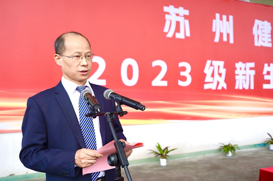 党委委员、副院长吴建洪作军训动员讲话,他指出,军训是一门必修课,是大学生增强国防意识、厚植爱国主义情怀、培育集体主义和革命英雄主义精神的重要形式,也是学院校风建设、素质教育和人才培养的重要环节。他提出三点要求,一要全面提升国防意识和爱国热情,二要时刻保持饱满热情和高昂斗志,三要始终坚定钢铁般意志和必胜信念,勉励新生在军训场上挥洒青春汗水,培养坚韧品质,成为有抱负、有担当、有毅力、有体魄的青年才俊。