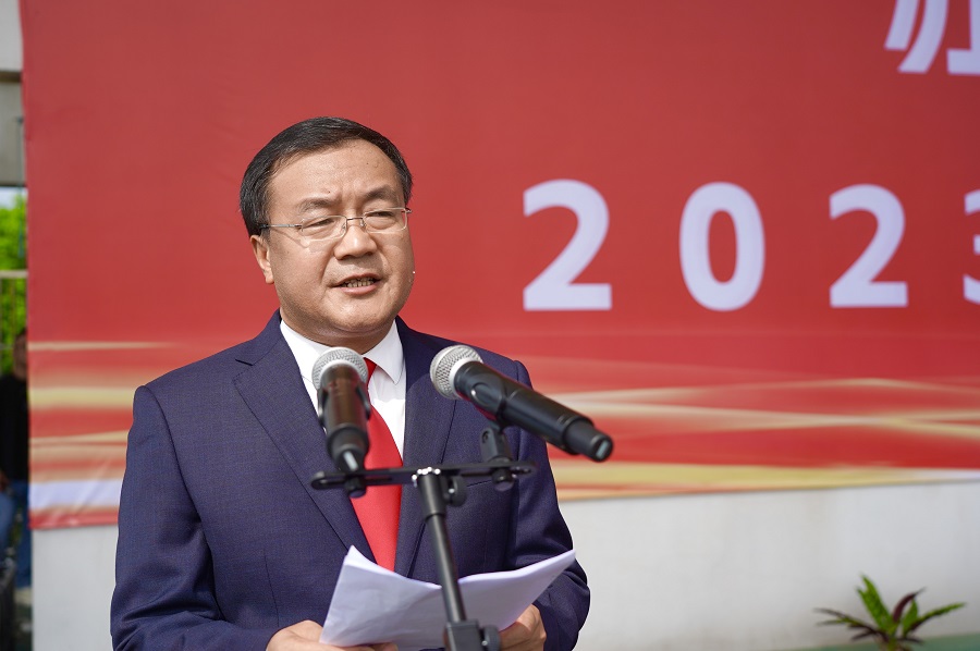 学院党委副书记、院长林长永致辞,他表示,今年这一届是学院办学史上新生人数最多的一届,新生来自全国10个省、10个民族,大家的到来为学院增添了生机活力。他勉励2023级新生发挥所长、挑战自我、展现风采,用奋进的姿态诠释青春最美的模样,并提出三点希望:一要坚定崇高的理想信念。把国家发展的重任扛在肩上,将个人理想与中华民族的共同理想联系起来,担负起中华民族伟大复兴的历史重任;二要锤炼坚韧的意志品质。从容应对变与不变的大环境,在军训中强健体魄、锤炼品格、磨炼心智,提高适应环境的能力和本领;三要磨练精湛的技术技能。在学习中坚持真理,在实践中坚守理想。多把时间花在教室里、图书馆里,把汗水挥洒在实验室里、实训工厂里,用奋斗回报最美丽的大学青春。