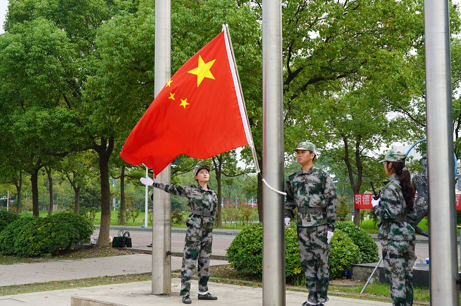 上午9:30,学院田径场上,红旗飘扬、歌声嘹亮,拉开了2023级新生军训总结大会的序幕。
