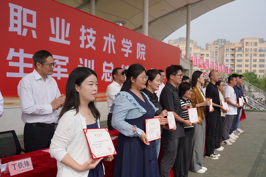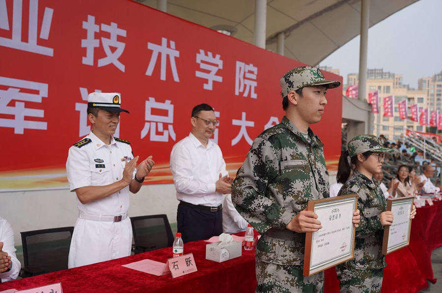 周晓刚宣读军训表彰决定。会上,还进行了先进集体和个人颁奖。