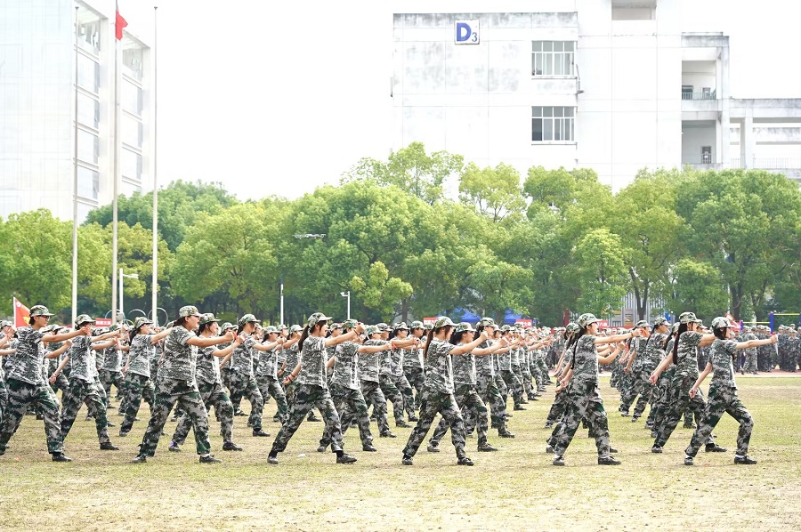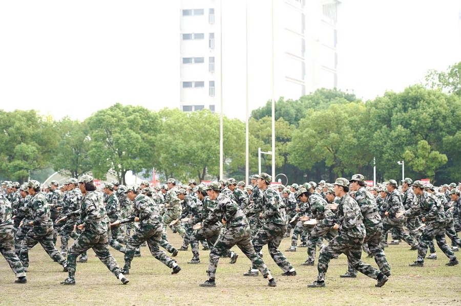 今年的军训汇报表演精彩纷呈,2023级新生集中展示了整齐的分列式和精彩的科目表演,擒敌拳方阵虎虎生威、气贯长虹,匕首操方阵敏捷流畅、英姿飒爽,今年还增加了女生匕首操表演和校外拉练,全方位展现了新生连日来的军训成果和良好的精神风貌。