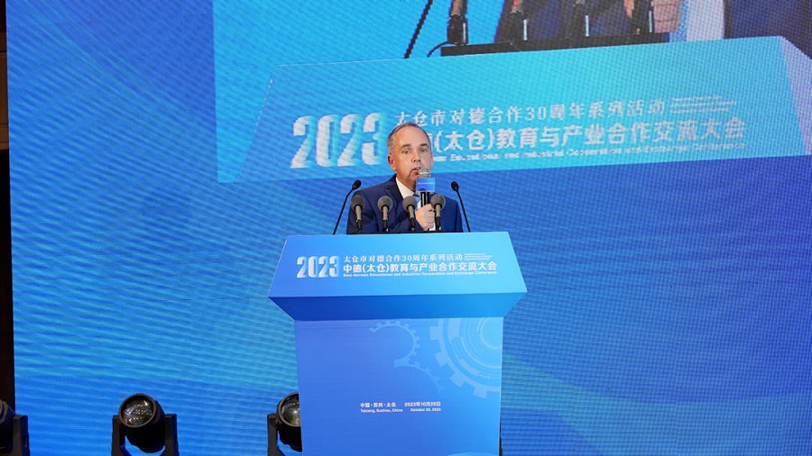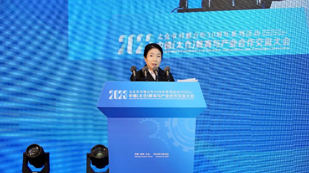 季晶在致辞时表示,一直以来,苏州与德国保持着友好、密切的人文交流和经贸交往。太仓作为“德企之乡”,从引进“德国模式”到制定“中国标准”,为现代职业教育改革提供可借鉴可复制的解决方案。苏州将推动中德双边合作发展共赢,以更高水平的对外开放促进高质量发展。