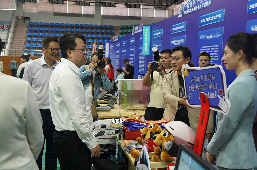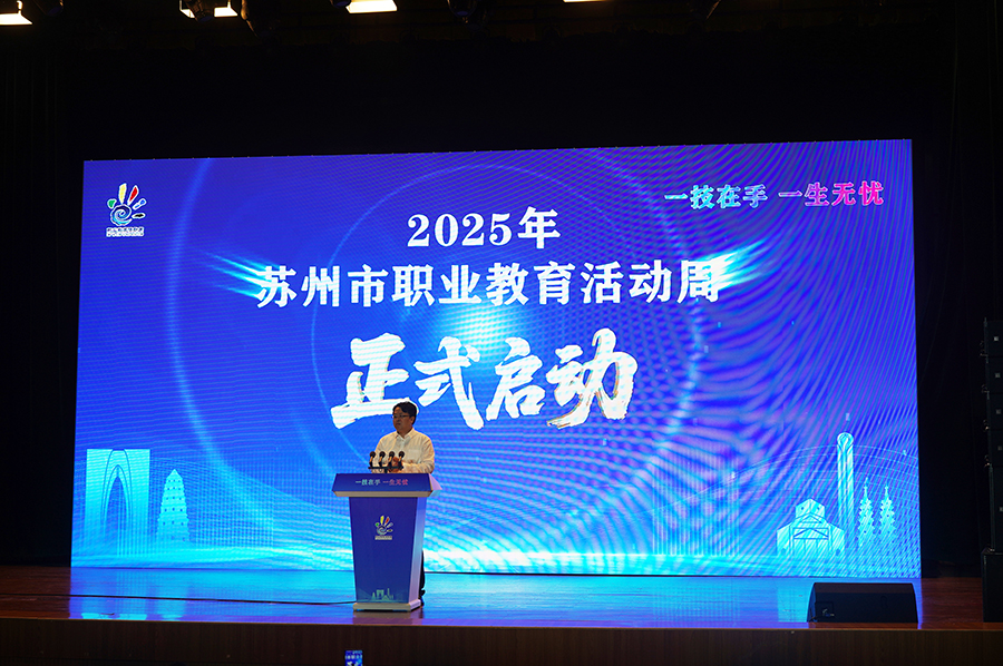苏州市委教育工委书记、市教育局局长周志芳在致辞中指出,苏州正以“教育、科技、人才”三位一体协同发展为牵引,推动职业教育、高等教育、继续教育协同创新,深化职普融通、产教融合、科教融汇。职业教育活动周是展示苏州职教成果、弘扬工匠精神的重要窗口。要以此为契机,讲好苏州职教故事,激励更多年轻人走技能成才、技能报国之路。要在立德树人中擦亮“苏工苏作”的底色,让“技能成才、强国有我”的信念扎根学子心田。要在服务发展中彰显“共生共荣”的本色,推动职业教育与产业“同频共振”、与企业“双向奔赴”。要在提质培优中夯实“内涵建设”的成色,大力实施职业学校“达标提质”工程,加快实施《苏州市推动现代职业教育高质量发展三年行动方案(2025—2027)》,推动教育链、人才链与产业链、创新链深度融合,培育输送更多大国工匠、能工巧匠和高技能人才。