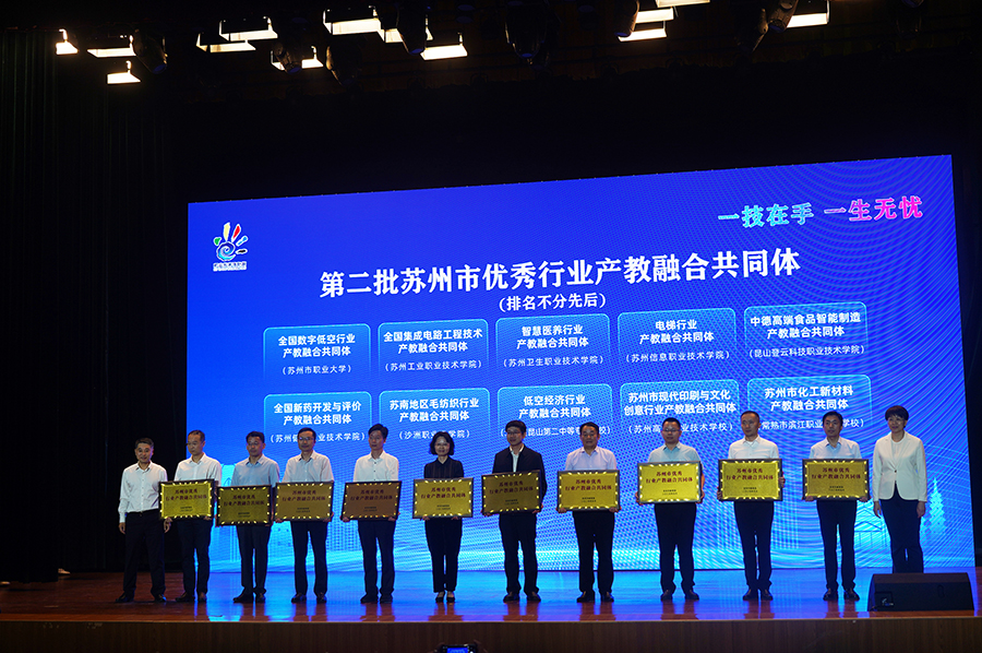 启动仪式上还现场公布了首批苏州市职业教育行业指导委员会名单并为专家颁发聘书,揭牌第二批苏州市优秀行业产教融合共同体。