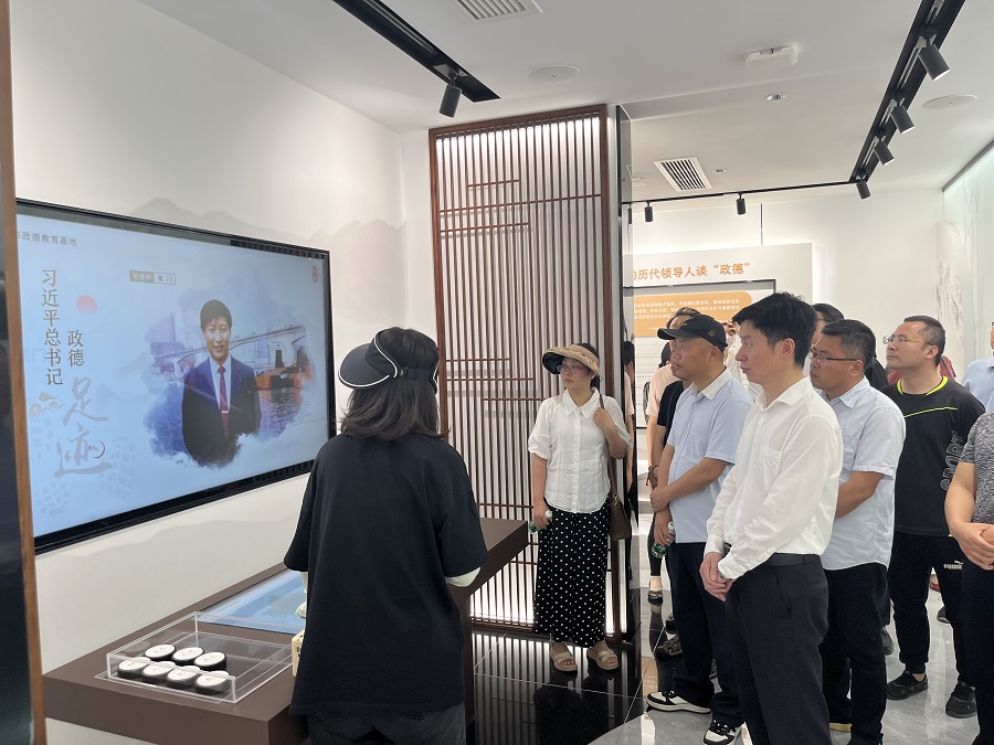 在太仓市政德教育基地,教职工们先后参观了“崇德堂”与“新时代政德教育馆”两个主题展馆,深入了解了太仓本土历史文献、文化经典、文物古迹中的政德典故。在太仓师风馆里,大家一同学习了唐文治、俞庆棠等先贤的教育事迹,了解了太仓教育的发展历程。在一些陈旧的教学老物件陈列柜前,不少老师纷纷驻足,感受老一辈教育者刻苦奉献的精神品格。