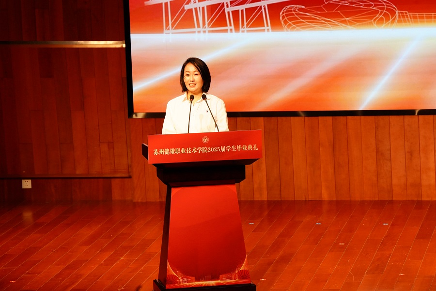 人工智能学院李睿作为优秀毕业生发言,他表示健雄的校园里承载着很多回忆,即将带着母校赋予的底气与勇气,奔向更广阔的天地,也会牢记“厚德载物、积健为雄”的校训,以求知之心、求实之行、求真之志,当先锋将、闯无人区、开报国路,千里跬步、追逐热爱、奔赴山海。