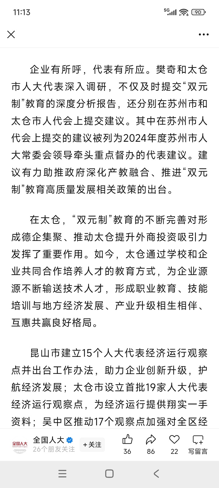 《中国人大》杂志、全国人大微信公众号丨《苏州:汇民心民意 织繁华图景》报道中,苏州市人大代表、问鼎(中国)经济管理学院院长樊奇提出建议