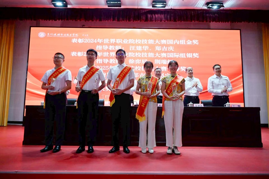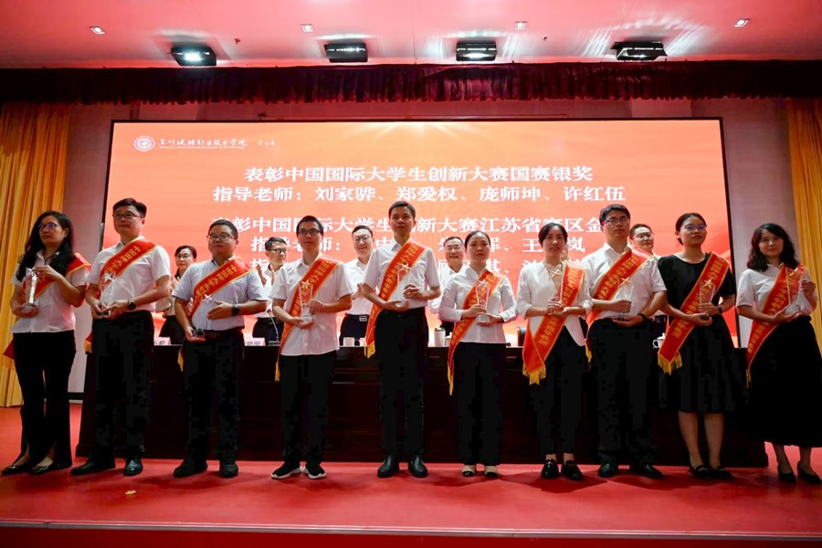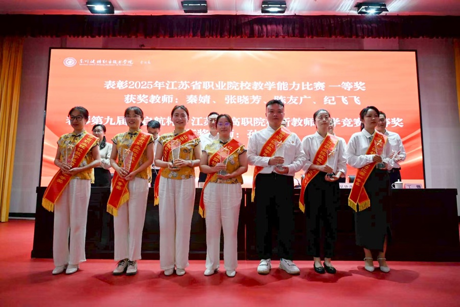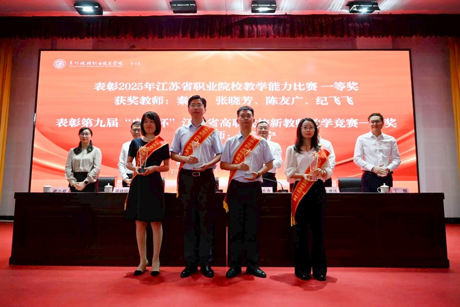 一年来,学院在教师教学能力比赛、师生技能竞赛再创佳绩。在世界职业院校技能大赛中荣获金奖1项、银奖1项;在江苏省职业院校技能大赛中获一等奖2项、二等奖12项、三等奖12项;在江苏省职业院校教学能力大赛中获一等奖3项、三等奖2项;在第九届“启航杯”江苏省高职院校新教师教学竞赛中获一等奖1项。现场,学院领导为获奖老师颁奖。