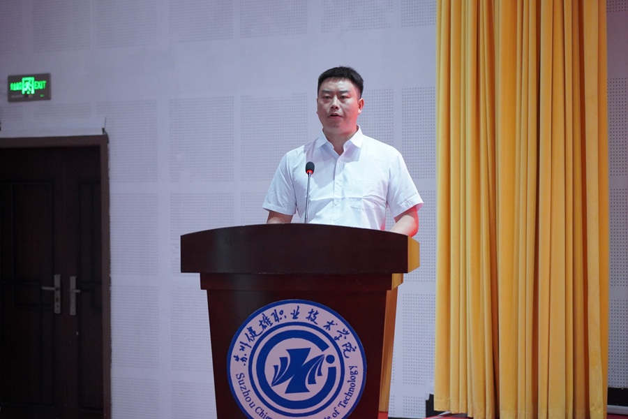 苏霄飞代表学院党委向全体教职工致以节日问候,向受表彰教师与团队表示祝贺,向新入职教职工表示欢迎,向为学院发展作出贡献的退休教师致以崇高敬意。他指出,一年来教师们在各领域成绩优异、风采卓然,并提出三点期望:一是坚定“心有大我”信念,把个人“小目标”融入国家“大蓝图”社会“大格局”,做民族复兴筑梦人;二是坚持“启智润心”的育人智慧,点燃学生梦想,做大国工匠的塑造者;三是坚韧“勤学笃行”态度,主动学习跟上时代,做终生学习的示范者。他要求全体教师弘扬教育家精神,将个人梦想融入教育强国、职教先行时代洪流,把价值追求镌刻在中国式现代化大道上,躬耕教坛、强国有我,共筑健雄多彩篇章。
