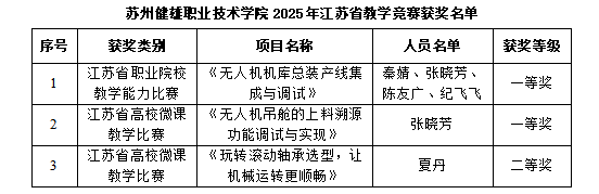 近日,2025年江苏省职业院校教学能力大赛和江苏省高校微课教学比赛比赛获奖名单相继公布。智能制造学院表现优异,累计荣获一等奖2项、二等奖1项,充分展现问鼎(中国)在教育教学改革方面的显著成果与创新实力。