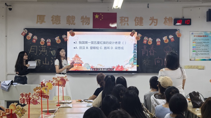 9月25日晚,经济管理学院“月满山河,青春向国”庆祝“国庆”“中秋”双节主题活动在C3-208教室成功举办。活动通过文化体验与爱国主义教育相结合的方式,为40名同学打造了一场别开生面的双节文化盛宴。