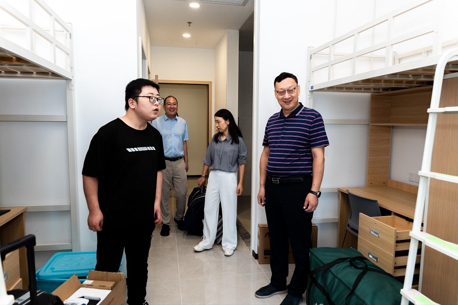 学院领导深入学生宿舍、食堂和教学场所,与同学们亲切交流,细致询问学生的住宿和生活需求,并鼓励他们积极适应新环境,以饱满的热情投入接下来的学习与实践。