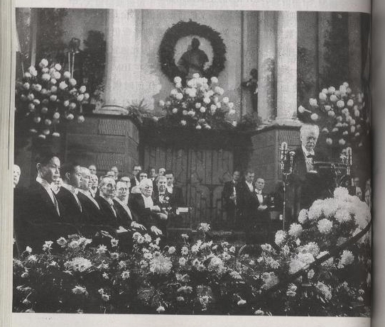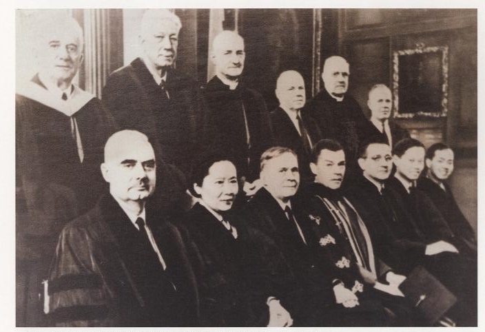1958年,普林斯顿大学将名誉博士学位第一次授予一位女性科学家——吴健雄,同时获得普林斯顿大学名誉博士学位的还有李政道(前排右一)、杨振宁(前排右二)