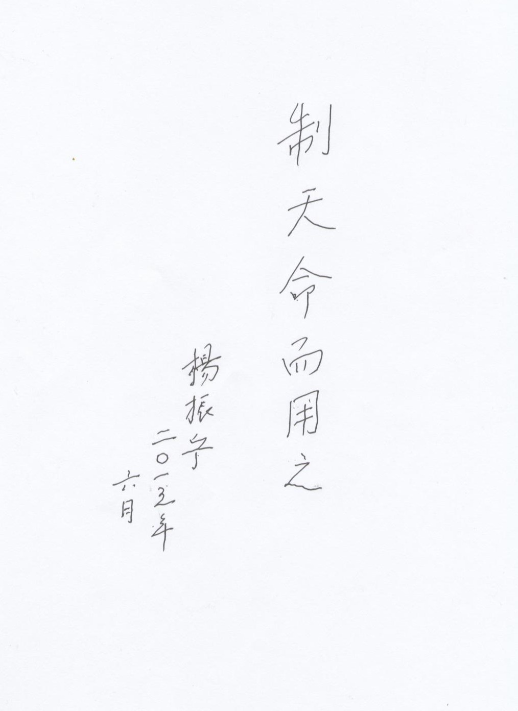 2015年6月,杨振宁先生在清华大学接待了健雄学生师生代表团,了解学院办学情况,对学院产教融合、科教融汇的发展路径给予肯定,并鼓励学院培养更多兼具科学素养与实践能力的技术技能人才。“制天命而用之”的题词手迹,成为连接先生与健雄学院的珍贵印记。