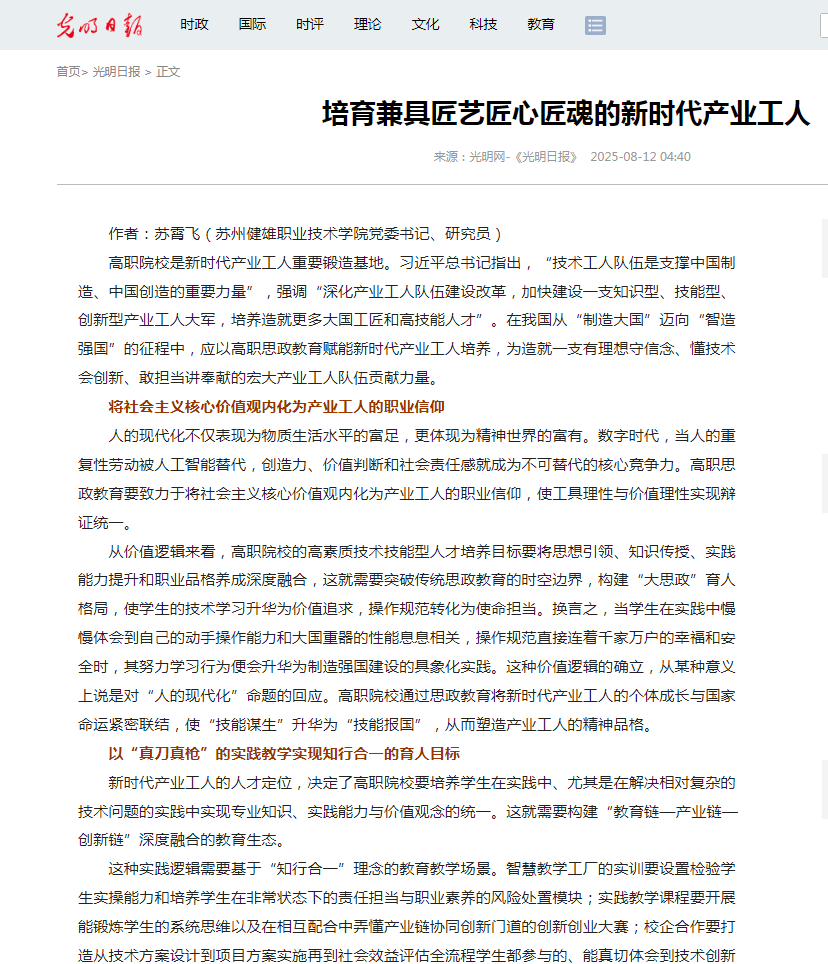 光明日报丨培育兼具匠艺匠心匠魂的新时代产业工人