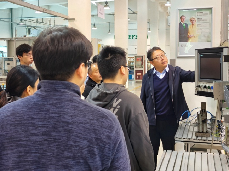 会议下半场,家长来到舍弗勒培训中心参观学习,朱经理演示了学生日常操作设备,讲解实训课程如何还原企业真实生产场景;随后为锻炼学生表达能力,让学生向家长讲解机床操作方法,这样不仅可以帮助学生巩固专业知识,还可以让家长直观感受舍弗勒双元制学徒在专业领域内的蜕变。