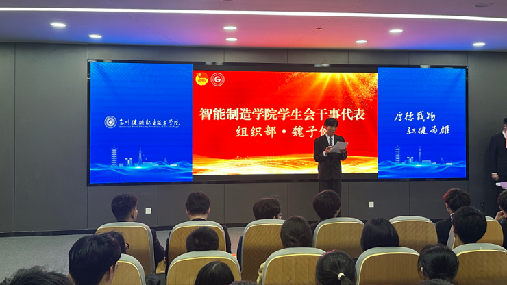学生会干事代表、组织部成员魏子健发言。他结合自身感悟分享对学生工作的理解,表态将以饱满热情投入工作,主动学习、积极协作,与全体成员携手助力学生会发展。