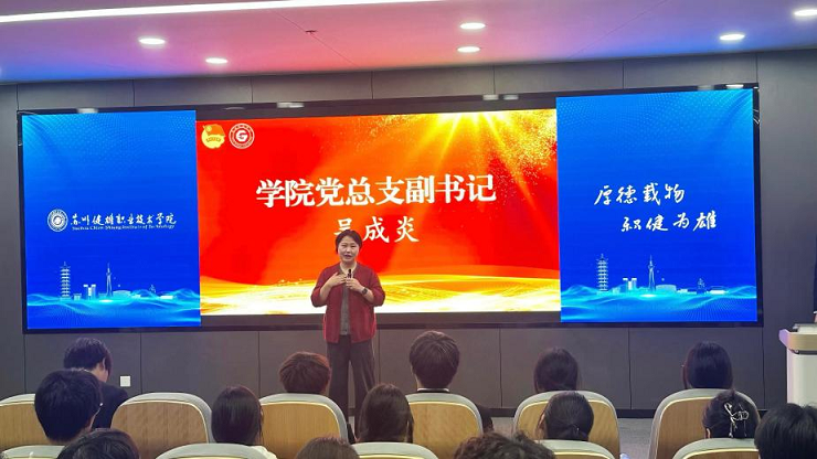 吴成炎致辞。她对第十八届学生会委员会全体成员的加入表示欢迎,肯定往届学生会在学院发展与学生成长中的贡献,并围绕责任、担当、协作提出要求,鼓励成员们倾听同学需求、解决实际问题,做好学院与学生间的桥梁纽带。
