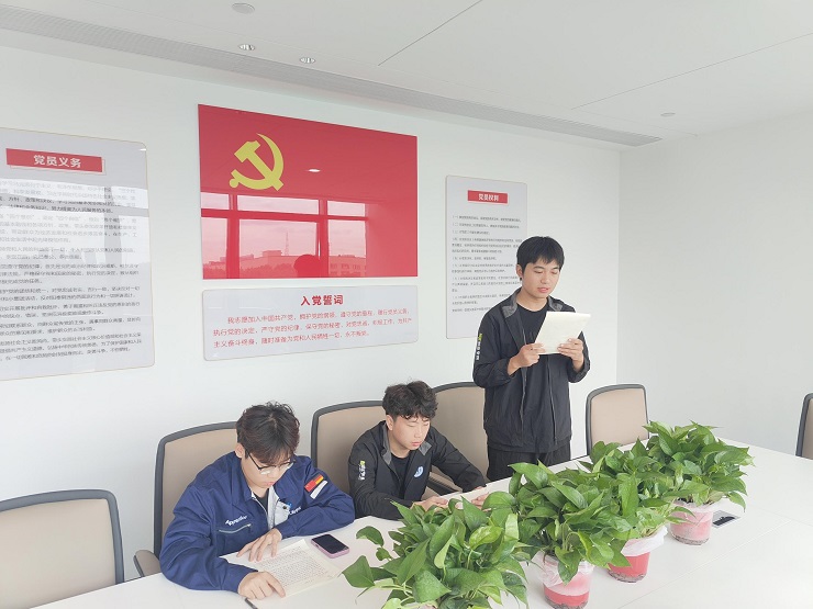 活动中,辅导员结合长征精神、延安精神等案例,强调理想信念是共产党人精神上的“钙”。在“诵读入党申请,铭记青春誓言”环节,学生代表依次发言,深情朗读自己递交的入党申请书。学生代表滕明宇结合专业学习分享感悟:“新时代的长征路是实现中华民族伟大复兴的征程,青年学生要主动担当历史使命,以党史铸魂励志,以实践锤炼本领,将精神力量转化为脚踏实地的行动。”
