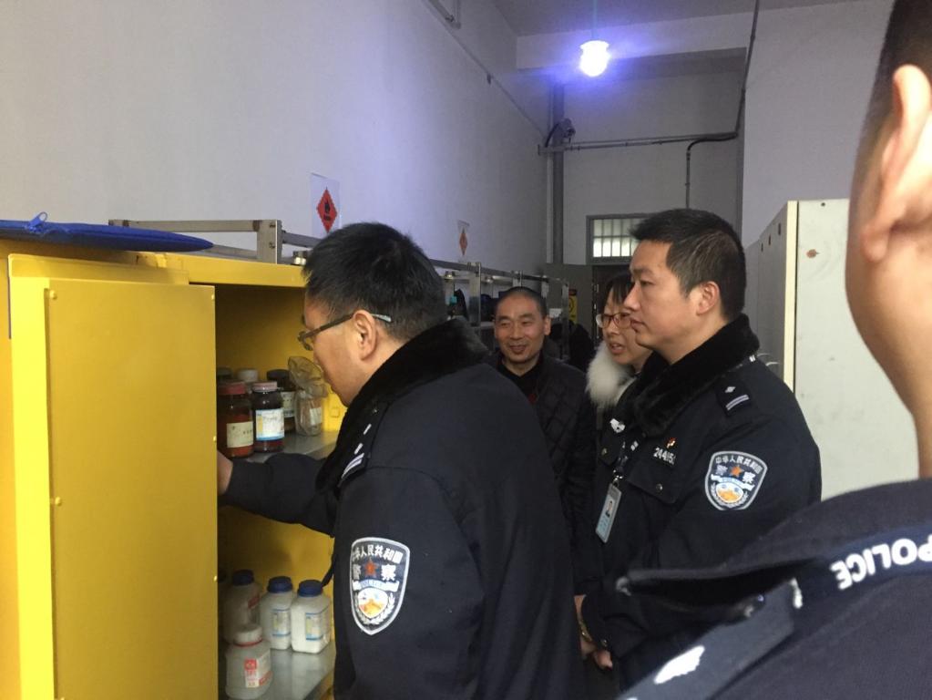 1月3日,国务院安委会办公室召开高等学校实验室安全管理工作视频会议,为深刻吸取北京交通大学“12•26”较大事故教训,落实市政府校园安全稳定会议精神,进一步推动高校实验室安全管理责任落实,保障师生生命财产安全。1月4日上午,太仓市公安局治安大队联合科教新城派出所对我校化学品仓库、校内合作企业,进行安全大检查,学校保卫处处长曹跃兴、医药科技学院院长顾准、副院长贾红圣陪同检查。