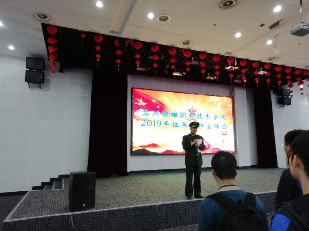 为贯彻落实全国大学生征兵工作会议精神,5月7日下午,学校武装部与太仓市人武部联合举办了问鼎网页版登录入口2019年征兵宣传会。太仓市人民武装部副部长严国华,学校武装部负责人,中德工程学院五百余名师生参加了会议。