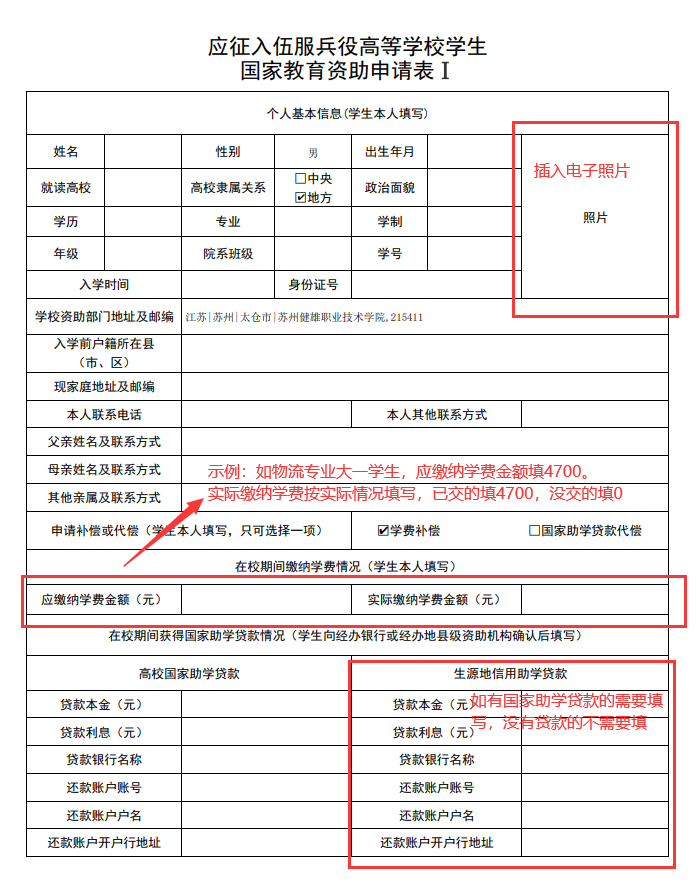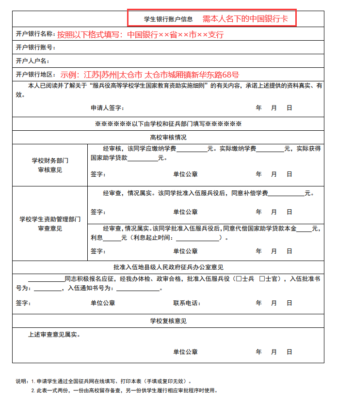 应征入伍服兵役高等学校学生国家教育资助申请表Ⅰ填表要求