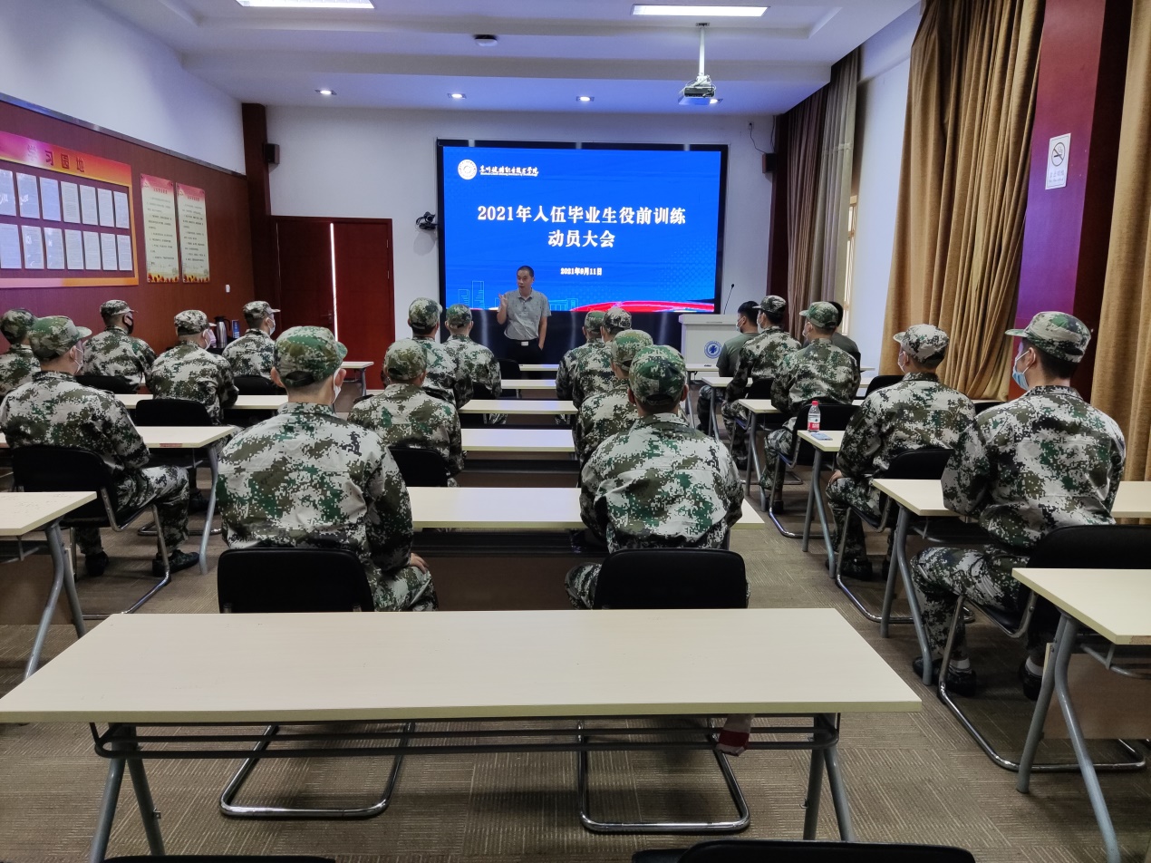 9月11日上午,2021年下半年入伍应届毕业生役前训练动员大会在吴园第三会议室召开,学院武装部负责人、19名从学院出兵的应届毕业生参加会议。