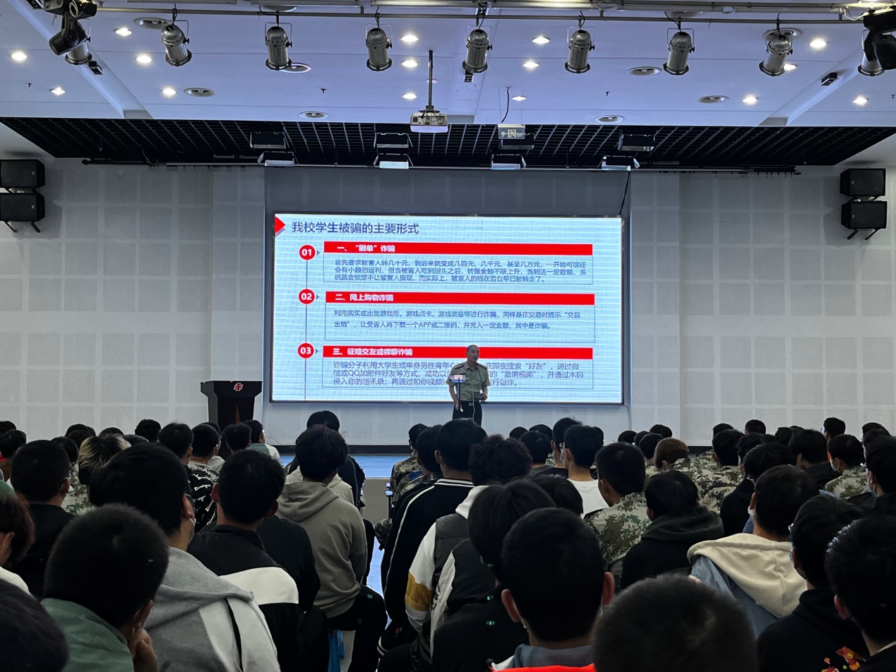 讲座内容包括电信诈骗、消防安全、生命安全、财产安全、交通安全五个方面。针对上半年发案率较高的电信诈骗,曹处长结合具体案例重点介绍了电信诈骗的概念、特点、主要形式和防范措施,提醒大家务必提高警惕,不贪小利、不轻易透露个人信息。消防安全方面,通报了高校火灾事故案例,介绍了预防火灾事故和逃生自救方法,特别强调了在宿舍内不能使用违章电器,遇到紧急情况要保持头脑冷静,沿逃生路线迅速撤离。生命安全方面,介绍了高校影响学生生命安全的主要因素,通报了相关案例,并对事故产生的原因进行了详细分析。财产安全方面,提醒学生时刻保管好个人财物,做到理性消费,远离网络借贷。交通安全方面,希望大家能够遵守交通规则,驾驶摩托车、电动车时佩戴头盔,途中不超速、不逆行、不玩手机。