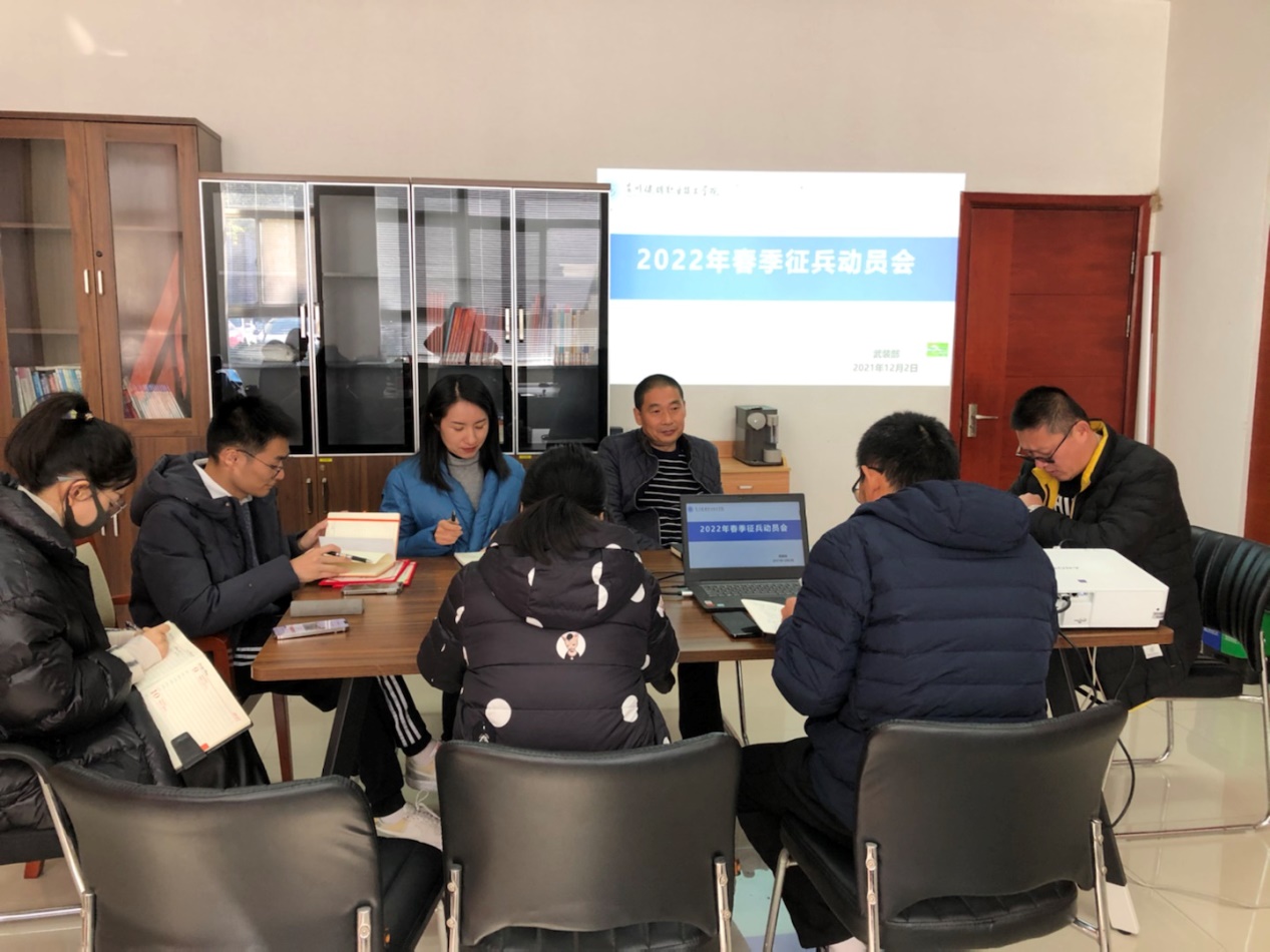 12月2日上午,学院武装部召开2022年春季征兵动员会,各二级学院征兵工作专员参会,会议由武装部负责人主持。