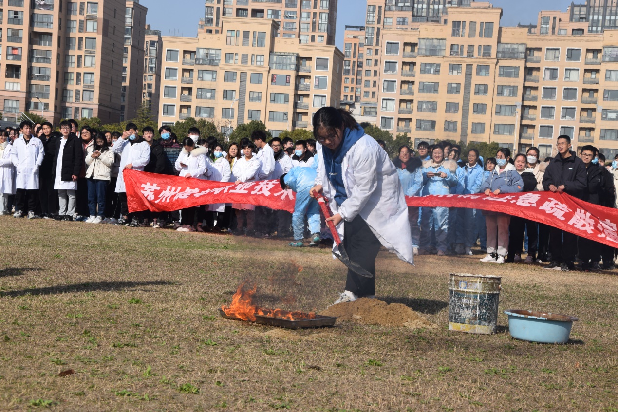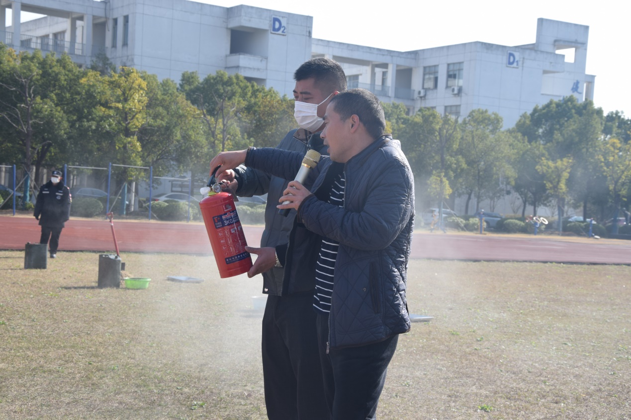在灭火演练中,保卫处处长曹跃兴为师生讲解了校园消防安全基本知识、沙土灭火法和干粉灭火器使用方法等防火注意事项,以及初期火灾扑救与逃生方法。学院院长顾准分享了一些实验室中常见的事故及应急处置措施。同学们也亲身体验了灭火器的使用方法。