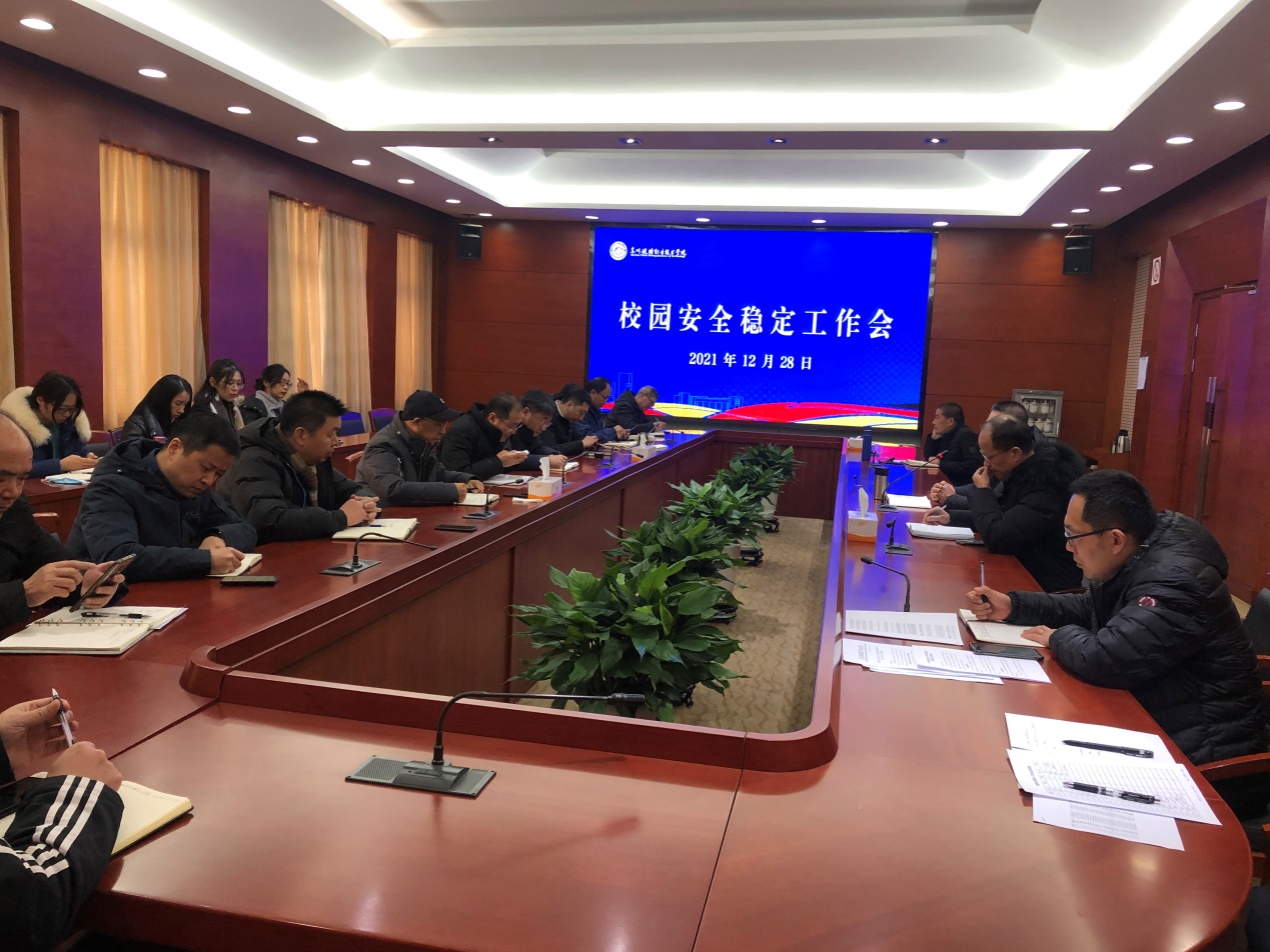12月28日下午,学院召开校园安全稳定工作会议,会议由张学军副院长主持。党委委员吴建洪、各二级学院党总支书记、分管学生工作领导及各部门负责人参加会议。