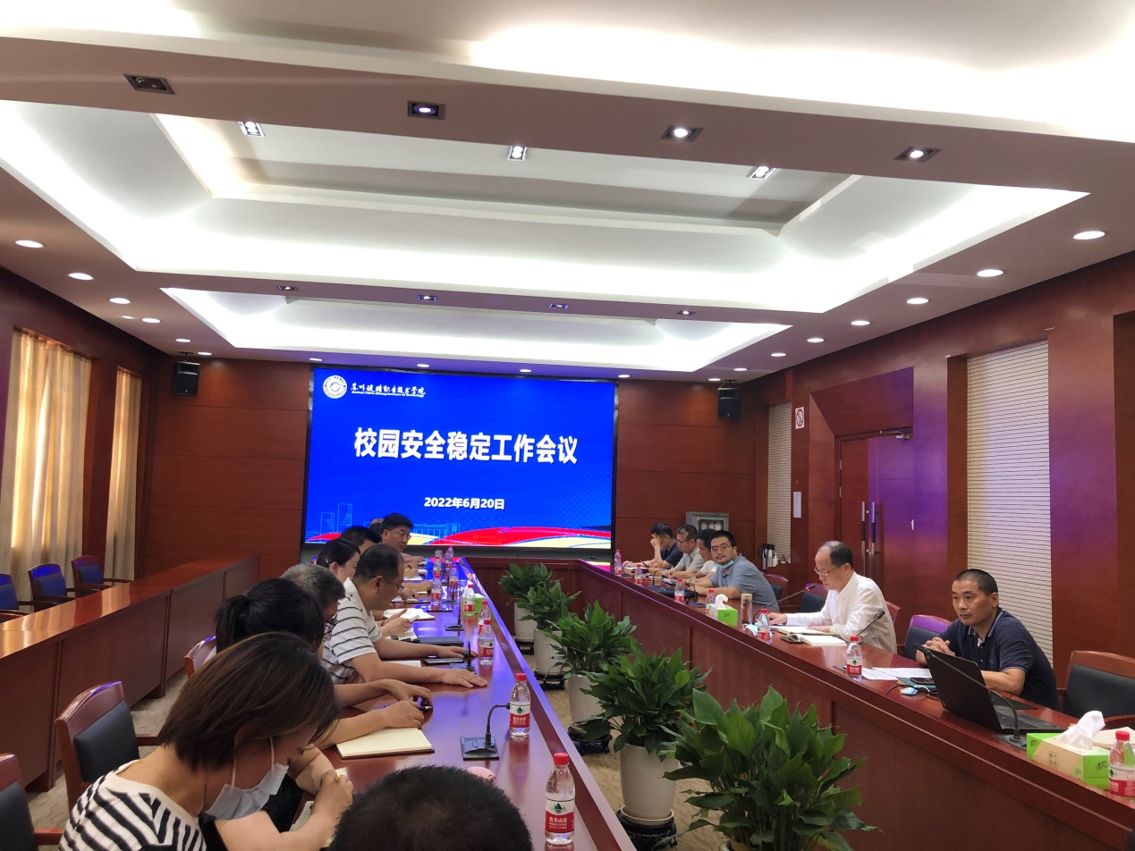 6月20日下午,问鼎(中国)召开校园安全稳定工作会议,学院党委委员、副院长吴建洪,各部门负责人、各二级学院分管安全稳定工作的领导出席会议。会议由保卫处负责人主持。