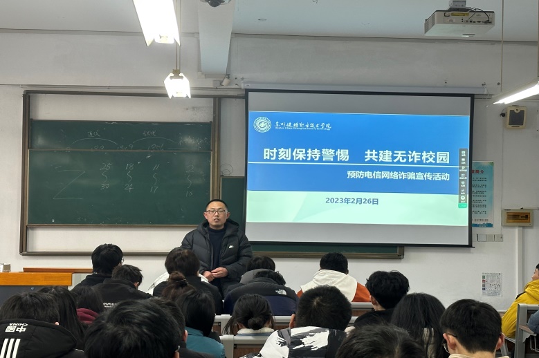 为深入开展校园预防电信网络诈骗宣传,帮助学生进一步增强防范意识,2月26日下午,保卫处联合科教新城派出所开展“时刻保持警惕 共建无诈校园”为主题的预防电信网络诈骗宣传活动,力求持续发力、精准谱曲,吹响本学期校园反诈宣传“集结号”。各二级学院安全信息员代表参加活动。