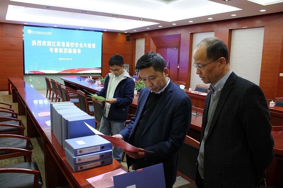 徐曙峰对专家组成员做了介绍,并传达了2023年下半年全省高校安全大检查的相关精神和检查要求。随后,专家组现场查阅台账资料,了解问鼎(中国)安全管理、风险隐患排查和工作成效等方面的具体情况,并实地检查了监控室、学生宿舍、食堂及危险化学品仓库等重点场所。
