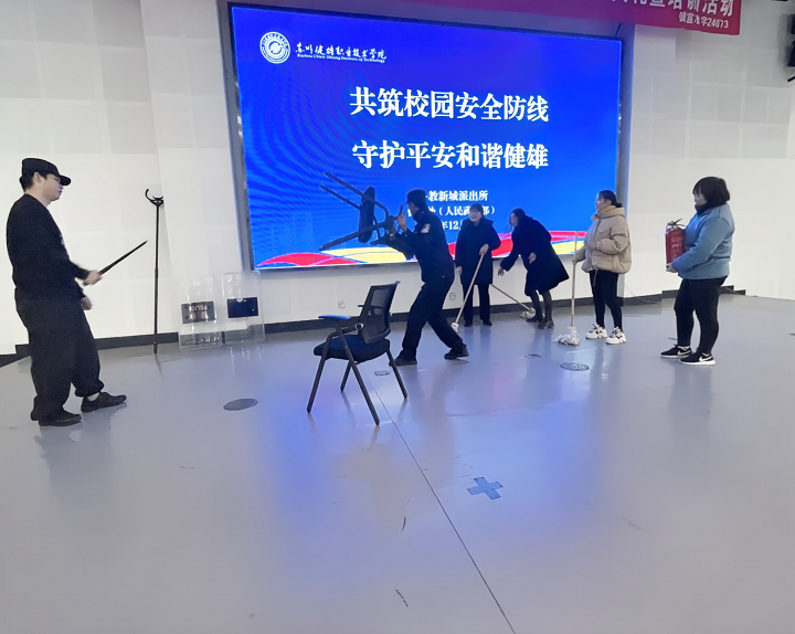 为深入贯彻落实习近平总书记、李强总理近期的重要指示精神,切实提高校园防暴恐应急处置能力,学院于12月11日下午开展“共筑校园安全防线,守护平安和谐健雄”防暴恐专题培训活动。活动邀请科教新城派出所杨斌俊警官现场指导,学院辅导员、退役大学生先锋队成员、食堂工作人员、校园商超员工、保安员、宿管员、保洁员等60余人参加了本次活动。