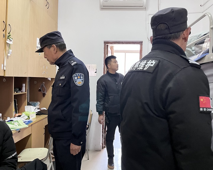 学期初,保卫处联合驻校民警、学生处宿管中心开展学生宿舍安全专项检查。检查组深入各楼栋,重点排查宿舍内违规电器使用、私拉乱接电线、消防通道堵塞、消防设施损坏等问题,并对宿舍楼内监控设备、门禁系统运行情况进行全面检查。针对检查中发现的安全隐患,现场提出整改意见,要求立即整改或限期落实,并建立台账跟踪督办。同时,保卫处通过在学生社区电视屏幕播放警示片、张贴警示标语等形式,提醒学生增强安全防范意识,杜绝安全隐患。