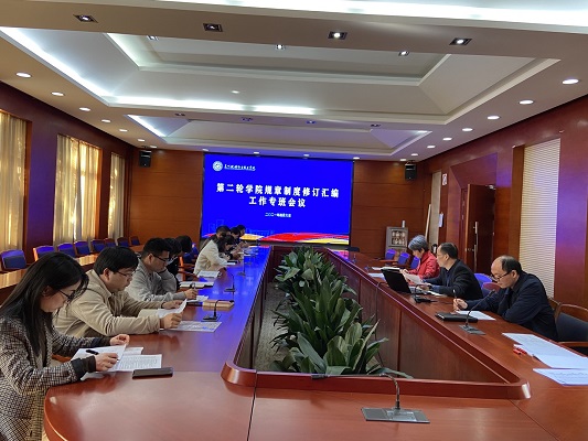 党委办公室(校长办公室、外事办公室)副主任鲍育育首先就《学院第二轮规章制度修订汇编各阶段工作安排表》做说明。明确了制度修订六个阶段的阶段性成果,以及各阶段工作专班负责人和部门负责人各自的工作职责,对如何开展近期工作以及每一项工作的具体要求做了详细说明,有序推进制度修订工作。