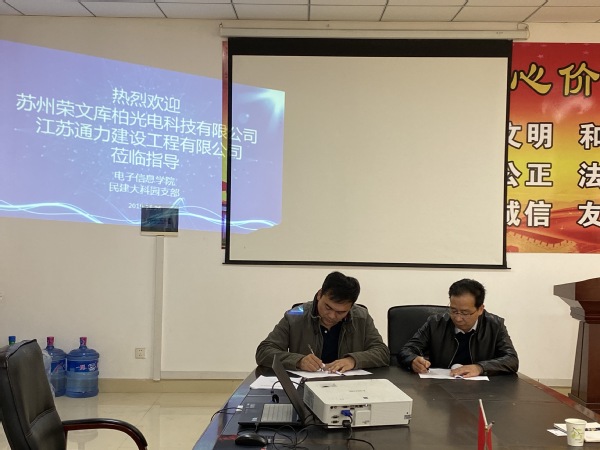 最后,电子信息学院和苏州荣文库柏光电科技有限公司以及江苏通力建设工程有限公司三方签订了校企框架战略合作书,希望在今后的交流合作中实现互惠共赢。(图文/唐薇 审核/高飞)