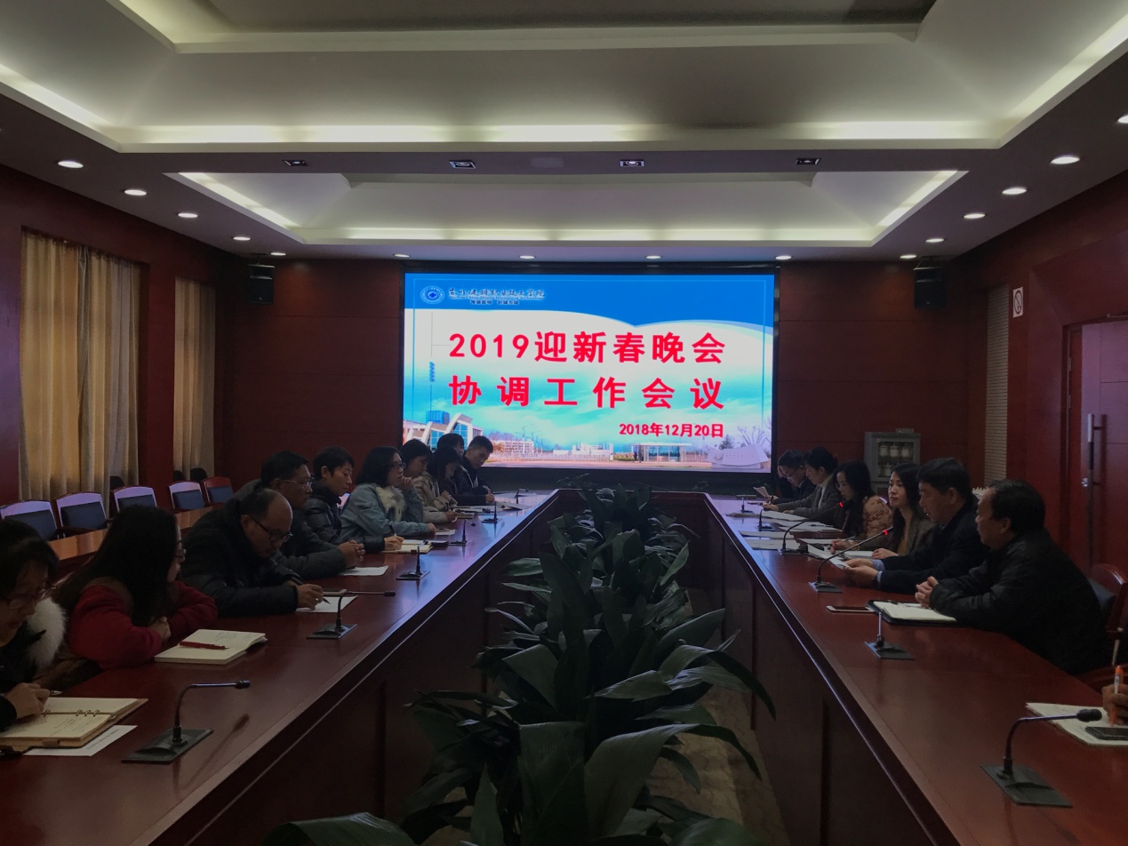2018年12月20日下午15:30在吴园第一会议室召开了2019年迎新春晚会协调工作会议,会议由工会副主席周丽雅主持,盛建军、马桂明、工会委员、各分工会主席、各节目指导老师、党办、校办、人事处、后勤处、校团委、艺术学院相关人员参加了会议。