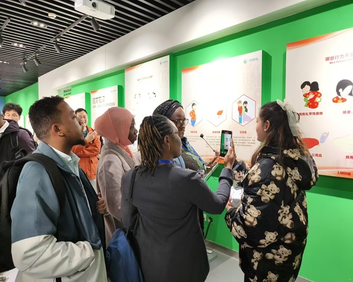 生命健康馆内,尼泊尔籍留学生李雪用流利的英文为大家揭开了生命健康的奥秘。丰富的展品和生动的展示形式,让大家深入了解了人体结构、健康知识以及现代医疗技术的发展。