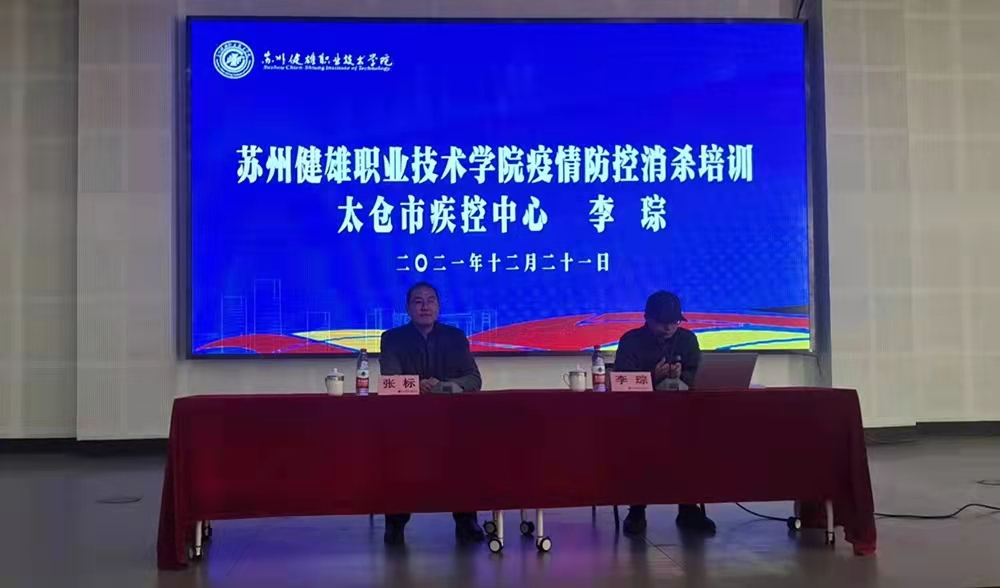 为做好疫情防控常态化工作,规范公共场所的消毒作业,确保全校师生的身体健康和生命安全,12月21日,学院邀请太仓市疾控中心李琮对疫情防控消杀工作开展培训。会议由后勤管理处处长张标主持,各二级学院实验实训场室管理员,食堂商超、物业公司的管理人员及一线操作人员参加了会议。