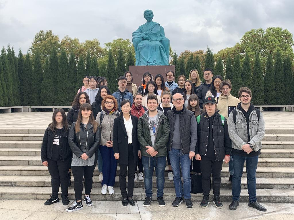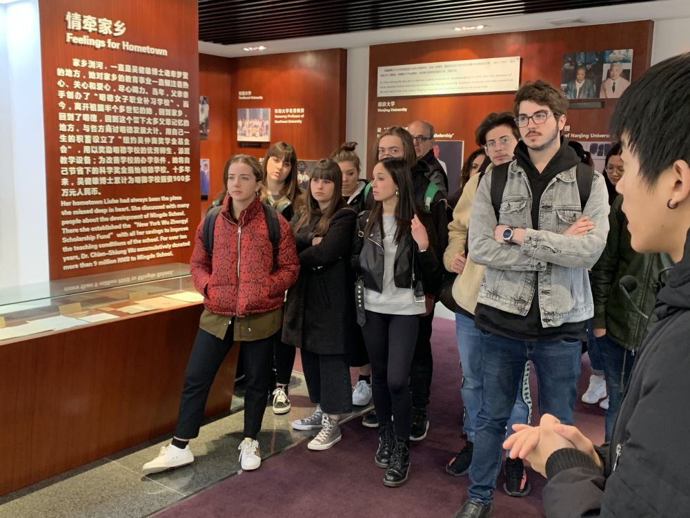 商学院谢小莉书记向意大利客人介绍了健雄学院的历史与发展现状,中意师生之间开展了热烈交流;师生团参观了吴健雄陈列馆,感受了吴健雄博士传奇的人生和热忱的家国情怀。最后,中意师生在吴健雄博士的雕像前合影留念,为真挚的中意友谊留下了鉴证。