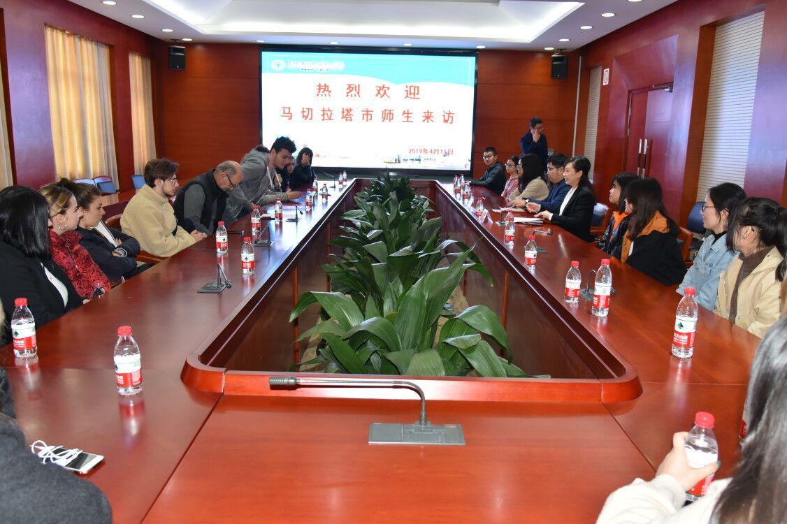 4月11日上午,与太仓市结为友好城市的意大利马切拉塔市师生团来到健雄学院参观访问,受到了商学院师生的热情接待。