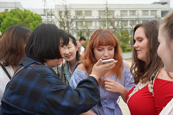 虽然来自不同国度、不同肤色,虽然远在地球的另一边,但是,两校学生在一起,一点没有陌生感,他们徜徉在校园里,共沐阳光,共赏鲜花,互相介绍、互加微信,谈论学习、生活和爱好,成为校园最有温度的群体。在知识广场、在吴健雄广场他们纷纷合影留念,留住瞬间,留住美好。