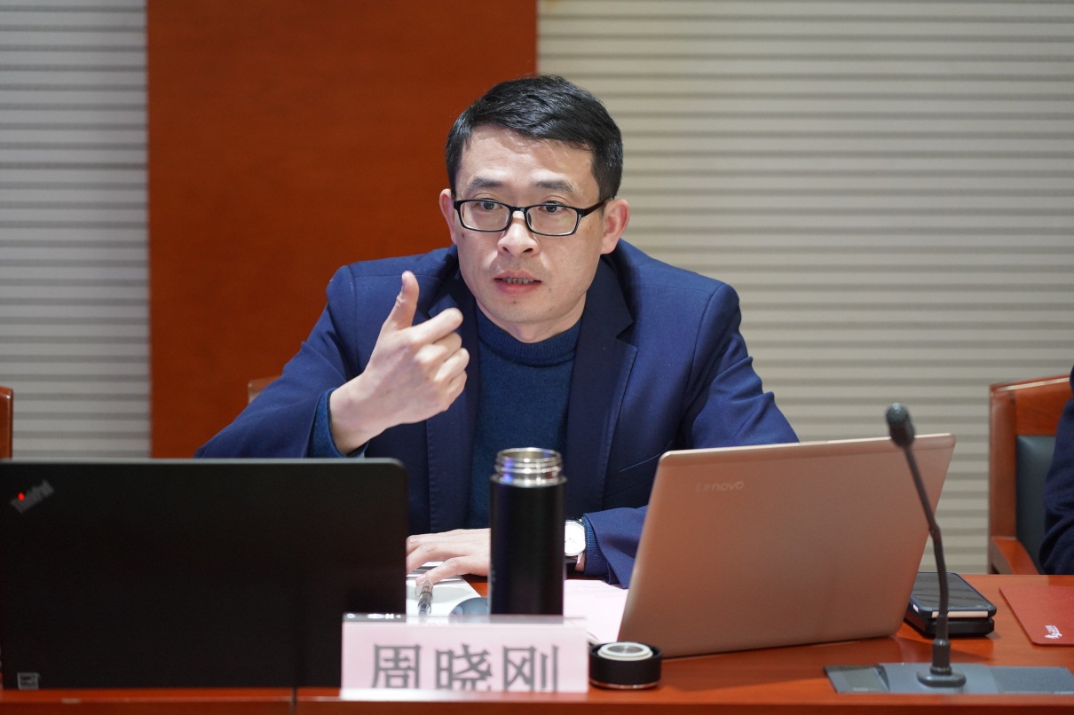周晓刚汇报了引进德国教育培训资源情况。学院有关部门负责人汇报了中德培训中心展厅设计方案、提档升级改造方案和太仓德企调研等情况。(图/文 何寿林 审核/丁锴)
