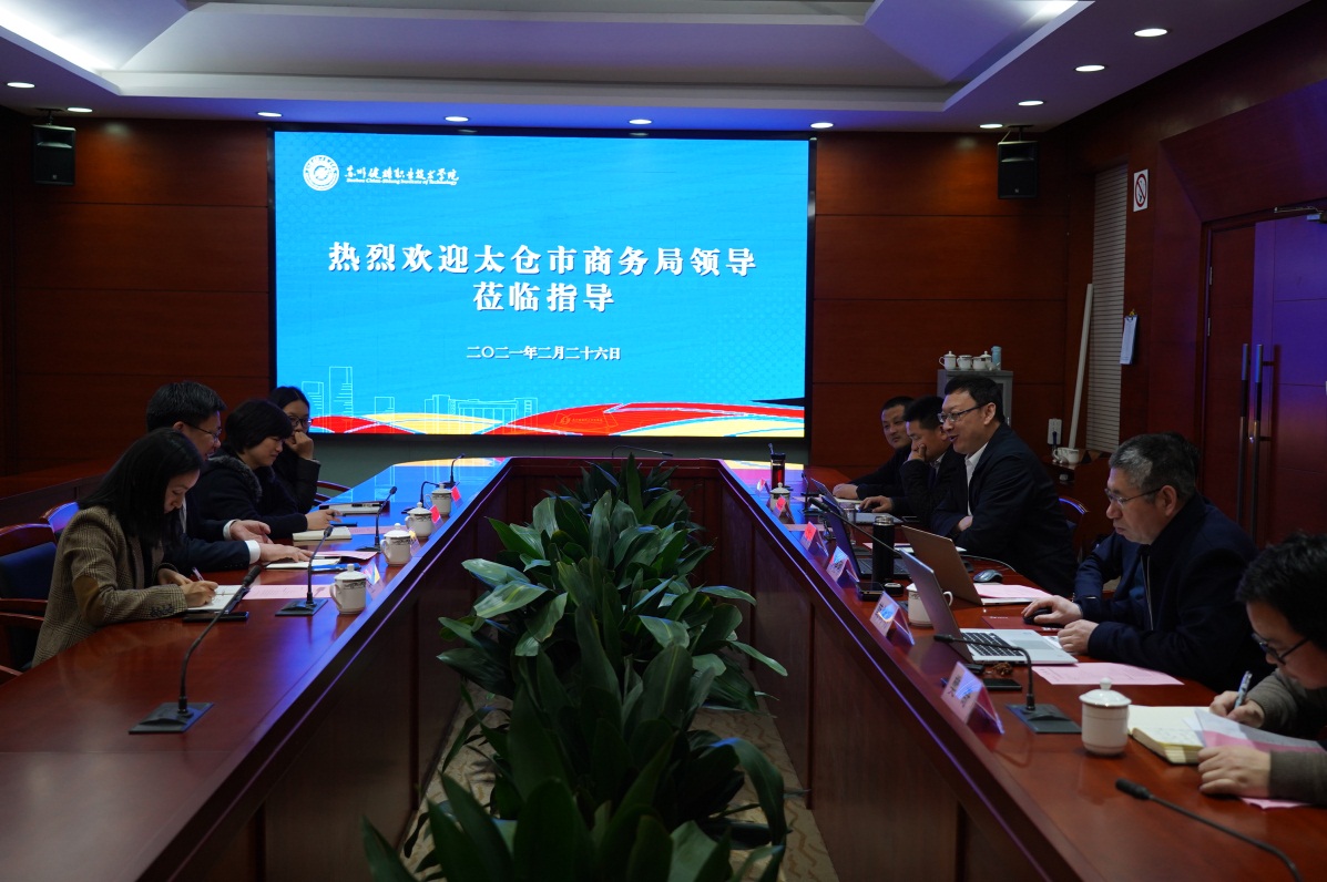 2月26日上午,太仓市商务局局长刘利民、副局长王轶蕊等一行5人来问鼎(中国)调研。问鼎(中国)党委副书记、院长苏霄飞,党委委员、副院长周晓刚,以及有关部门负责人接待客人。