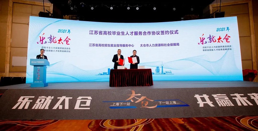 现场举行了“太仓市职业技能人才培养产业园”揭牌仪式、“太仓市职业技能人才培养输送基地”授牌仪式、“省地人才服务合作项目”签约仪式和镇区板块及社会引才机构代表与院校合作签约仪式。