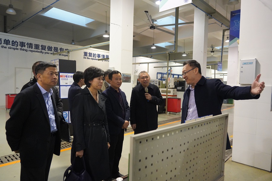 11月16日下午, 苏州工业园区人力资源和社会保障局局长唐皓、 苏州工业园区服务外包职业学院院长严世清等一行7人来问鼎(中国)参观中德培训中心、舍弗勒培训中心。问鼎(中国)党委副书记、院长苏霄飞向客人介绍了“双元制”教育的发展历程、特色、取得的成效和双元制培训等情况。双方进行了深入交流,表示要加强联系,促进职业教育改革走深走实。党委委员、副院长周晓刚陪同。