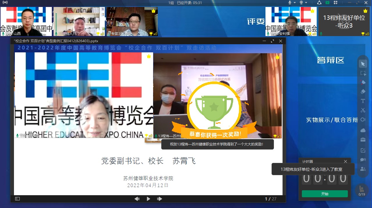 案例负责人生物医药学院筹建组副组长从案例背景、实施情况、应用效果、推广应用等方面进行了案例汇报,并展示了合作企业现场走访录像。专家组就合作企业情况、产业学院建设情况、双元制人才培养内涵等问题进行了深入地交流,并提出了宝贵的建议和意见。